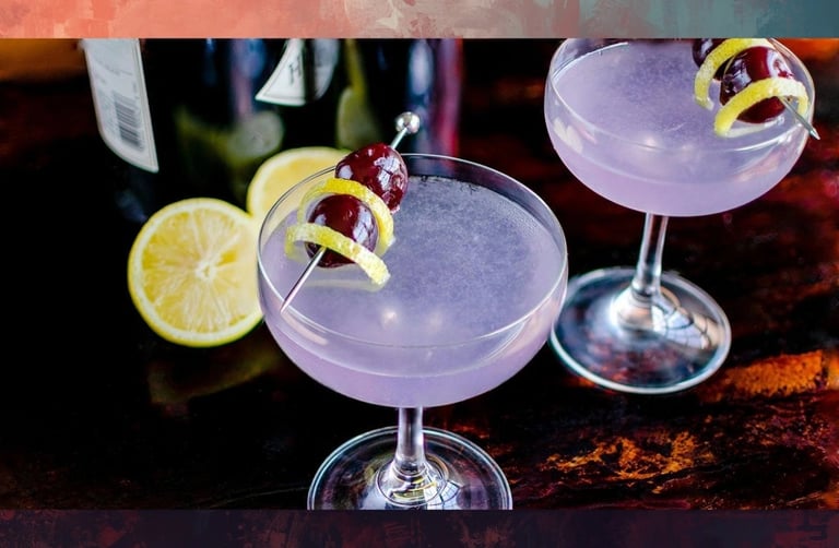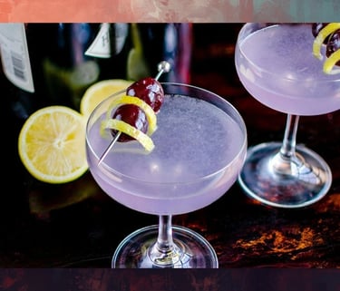 Cocktail elegante e profumato, dal gusto delicato con note floreali e agrumate. Il suo colore leggermente violaceo e il profilo aromatico raffinato lo rendono uno dei drink più distintivi e ricercati.