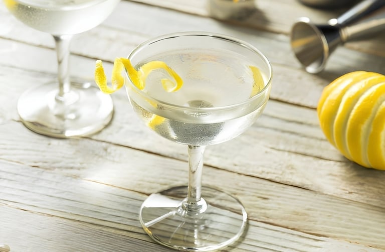 Cocktail iconico e raffinato, dal gusto secco e pulito. Elegante nella sua semplicità, esprime al massimo le note botaniche del gin, risultando deciso e sofisticato.