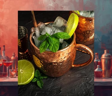 Nato negli Stati Uniti negli anni ’40, fu creato per promuovere vodka e ginger beer. È diventato famoso anche per il suo caratteristico servizio nella tazza di rame, oggi simbolo del cocktail.